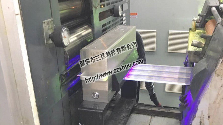 ▲在這種情況下,在佛山客戶的中天膠印機(jī)上安裝了LED UV固化系統(tǒng)。 客戶使用杭華161普通UV墨水以60m / min的速度在涂布紙,貼紙等上進(jìn)行八色打印。 無需汞燈或更換汞燈