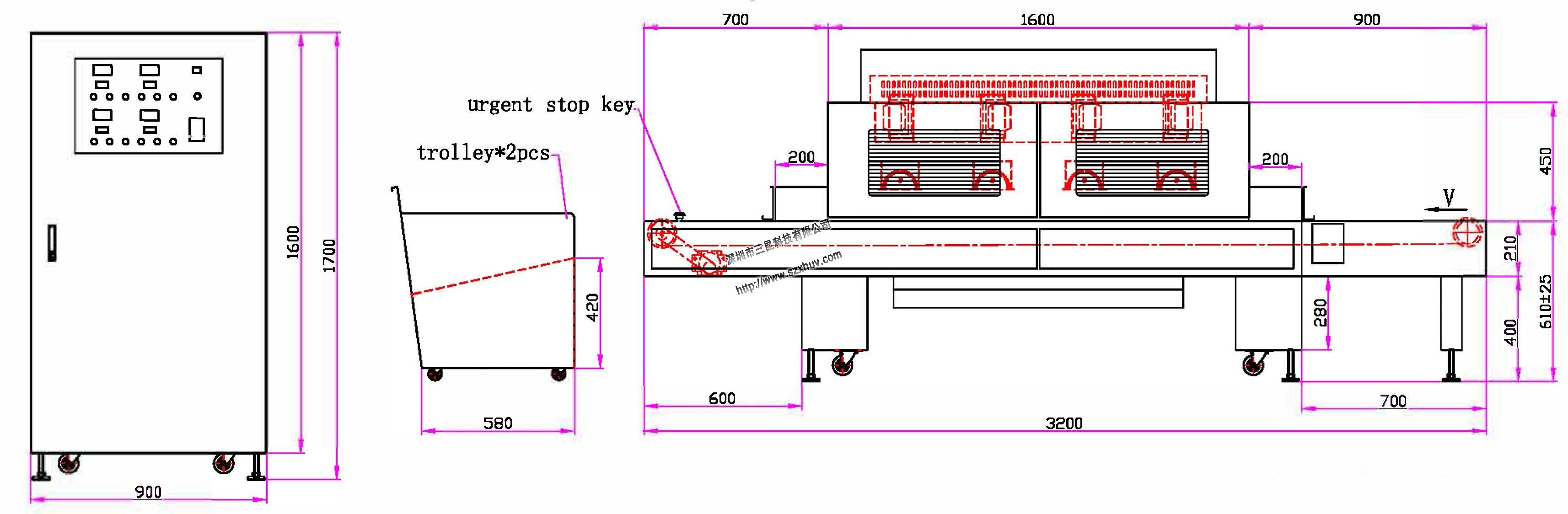 1.紫外線燈:10kW*4pcs(Mercuryuvlamp)